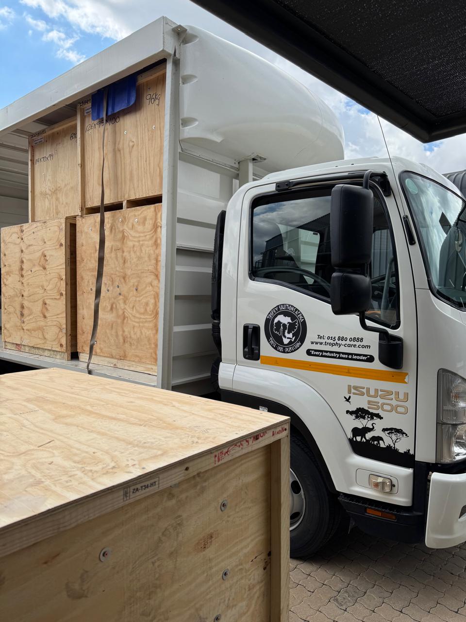 We take great care in packing trophies to ensure their safe transport. Skulls and horns are bubble-wrapped, skins are sealed in durable plastic, and each item is labeled for identification. Custom-built crates provide sturdy protection, reinforced with high-pressure nails and plywood cladding. Every crate is disinfected to meet regulatory standards, ensuring safety during transit.